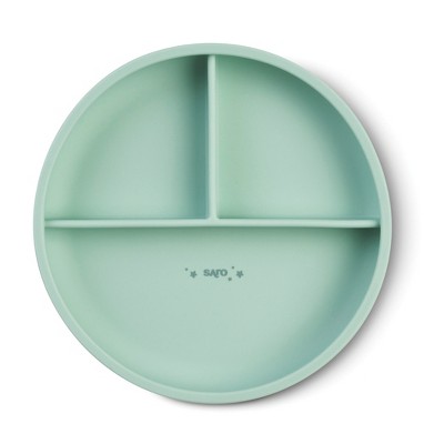 SARO "Food & Fun" 3-Compartment Silicone Plate: Suction Base, Baby-Led Weaning Toddler Feeding Plate