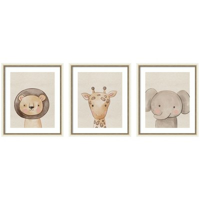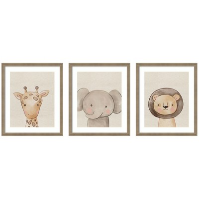 Kate and Laurel Baby Animal Portrait 3 Piece Framed Wall Art Print Set by The Creative Bunch Studio, Florence Light Brown, 3 Piece Set 21x25