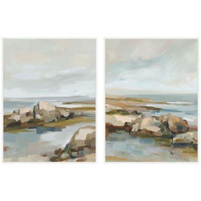 Kate and Laurel Seaside I & II 2 Piece Framed Canvas Wall Art Set by Amy Lighthall, Sylvie White, 2 Piece Set 31x41