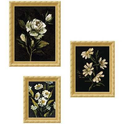 Kate and Laurel Moody Whites Floral No. 2 3 Piece Framed Wall Art Print Set by Annie Quigley, Versailles Gold, 3 Piece Set 22x28/19x24/16x20