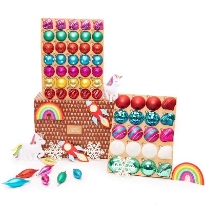 Every Day is Christmas Deluxe 80 Piece Set of Shatterproof Ornaments, Full Tree Ornament Set, Christmas Balls and Decorations