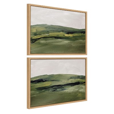 Kate and Laurel Sylvie Green Mountain Landscape I and II Framed Canvas Art Set by Amy Lighthall, Sylvie Natural, 2 Piece Set 18x24