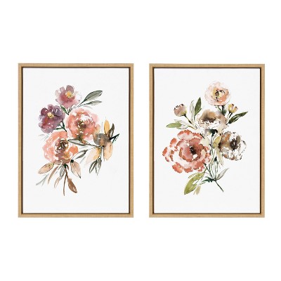 Kate and Laurel Sylvie Peach Roses and Floral Bouquet Muted Framed Canvas Art Set by Sara Berrenson, Sylvie Natural, 2 Piece Set 18x24