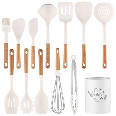 NutriChef Kitchen Cooking Utensils Set - Brown