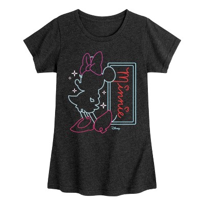 Girls' - Disney - Minnie Mouse Neon Outlined Fitted Short Sleeve Graphic T-Shirt