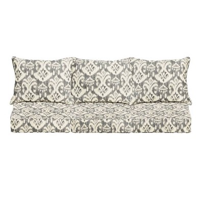 Sunbrella Outdoor Seat Cushion Gray/Cream: Water-Resistant, UV-Protected, Ikat Design Patio Furniture Cushion with Zipper