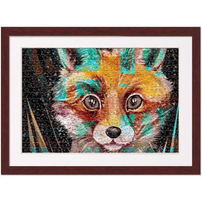 PosterPalooza | Brown Wood Puzzle Frame Kit with Glue Sheets, White Mat, UV Acrylic - Available in 20 Sizes