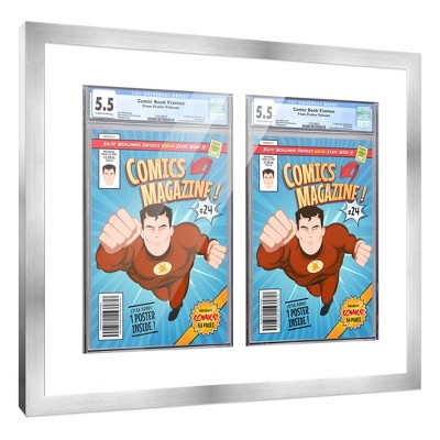 PosterPalooza | Comic Book Frame for 2 Graded Comics - Silver Wood with White Mat Comic Frame - 17x21