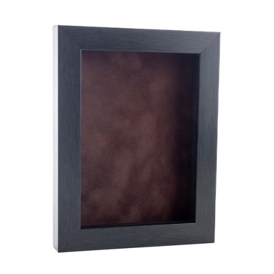 PosterPalooza | 4x6 Shadow Box Frame Charcoal Gray Wood, 3/4" Depth, Brown Suede Backing, UV Acrylic