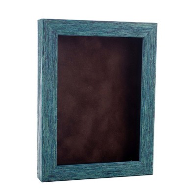 PosterPalooza | 4x6 Shadow Box Frame Blue Wood, 1" Depth, Brown Suede Backing, UV Acrylic - 4x6 Inch Frame