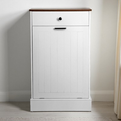 Tilt-Out Wooden Trash Can Cabinet with Drawer, 10-Gallon Farmhouse Hamper for Kitchen & Laundry