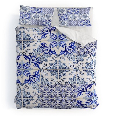 Deny Designs Full/Queen Alyssa Hamilton Art Gemstone Duvet Cover and Pillow Sham Set Blue: 300 Thread Count, Woven Polyester, Hidden Zipper