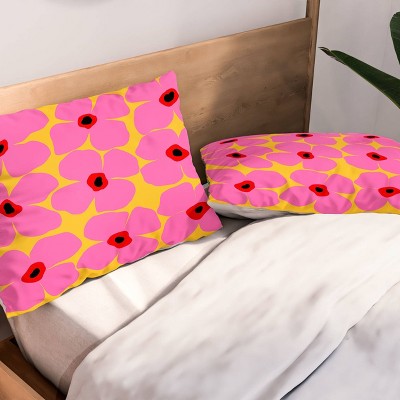 Deny Designs Maritza Lisa Abstract Pink Flowers with Yellow Duvet and Sham Set