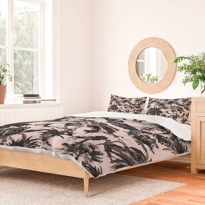 Deny Designs Marta Barragan Camarasa Obsession Tropical Palm Trees Duvet Cover and Pillow Sham Set Black