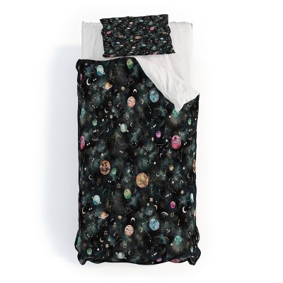 Deny Designs Kids' Ninola Design Mystical Galaxy Duvet and Sham Set Black