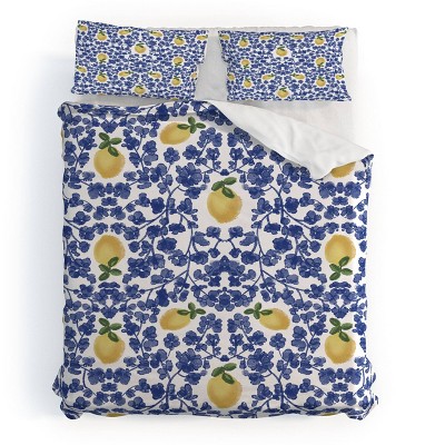 Deny Designs 3pc King Britt Mills Chinoiserie Lemons Duvet and Sham Set