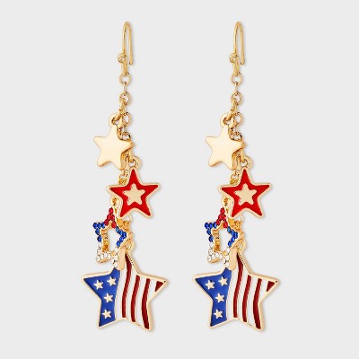 Americana Earrings with Stars - Gold/Multi