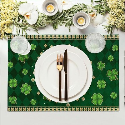 Lomsoe St Patrick's Day Placemats Green Shamrock Table Mats Seasonal Spring Party Kitchen Dining Decor St Patrick's Day Gift 12x18Inch