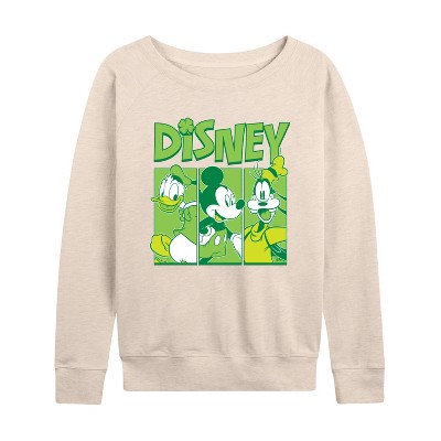 Women's - Disney - Grid Shamrock Lightweight French Terry Wide Neck Long Sleeve Graphic Shirt