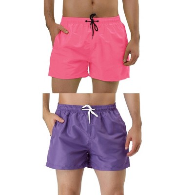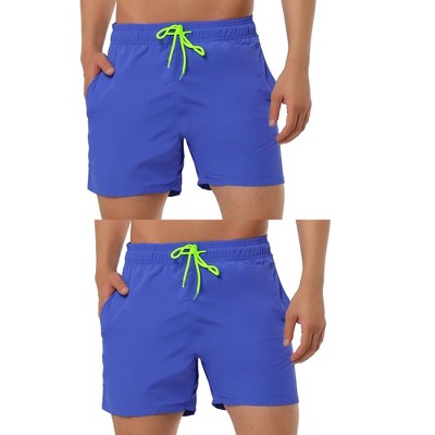 Lars Amadeus Men's Summer Solid Color Drawstring Waist Mesh Lining Bathing Swim Trunks 2 Packs