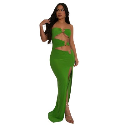 Slickblue Women’s Evening Dress with Bold Cutouts, Metallic O-Ring Details, Open Midsection, Thigh-High Slit, S-L