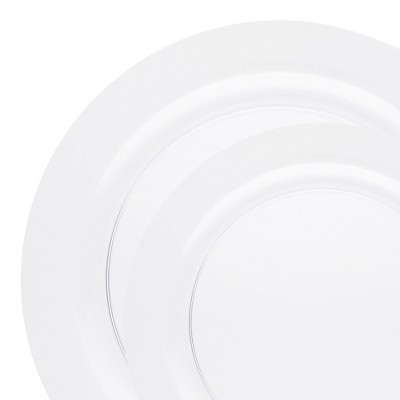Smarty Had A Party 10.25" White w/ Gold Rim Organic Plastic Dinner Plates - 120 pcs