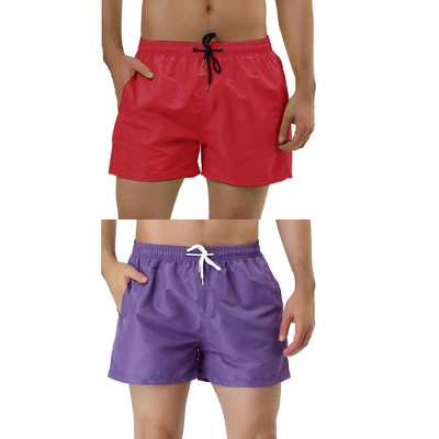Lars Amadeus Men's Summer Solid Color Drawstring Waist Mesh Lining Bathing Swim Trunks 2 Packs