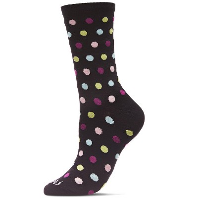 Memoi Multicolor Polka Dots Bamboo Blend Crew Sock Black 9-11