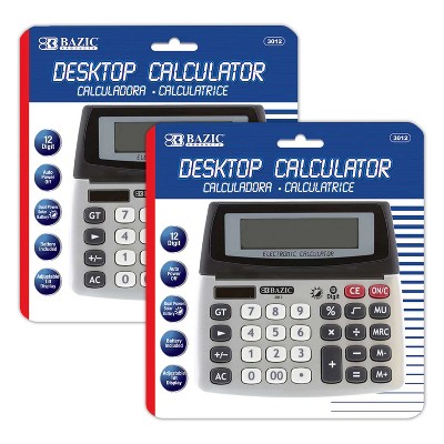 BAZIC Products® 12-Digit Dual Power Desktop Calculator with Adjustable Display, Pack of 2