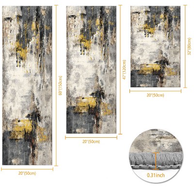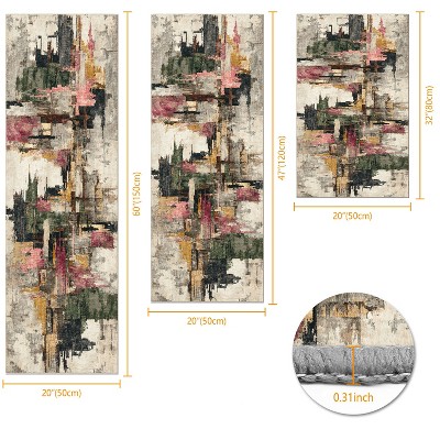 Three-Piece Kitchen Rug Set Non-Slip Washable Abstract Pattern Soft Comfort Mat for Sink Floor Entryway Hallway Bathroom