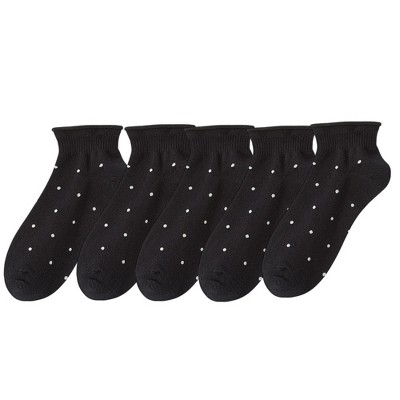 Anna-Kaci 5 Pairs Women’s Ankle Socks Soft Ribbed Top with Small Polka Dot Pattern for Loafers Ballet Flats or Sneakers