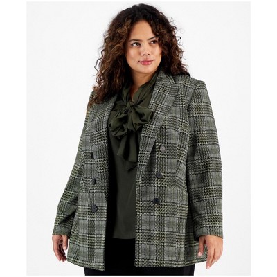bar III Womens Plaid Open Front Double Breasted Blazer Jacket