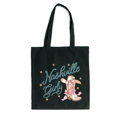 City Creek Prints Coquette Nashville Girly Canvas Tote Bag - 15x16 - Black