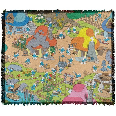 The Smurfs Smurf Village Blanket 50"x60" Woven Tapestry