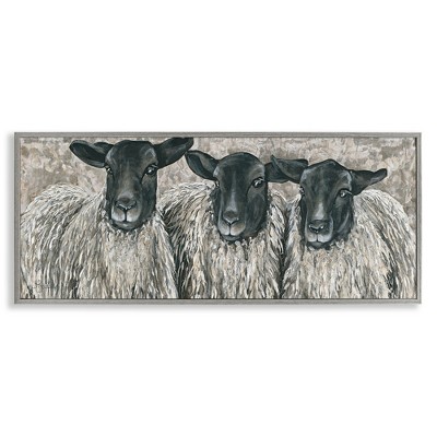Stupell Industries Three Sheep Trio Portrait Framed Giclee Art, Gray, 24" x 10"