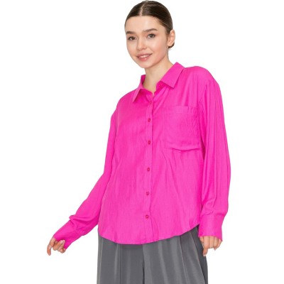 Slickblue Women's Button Down Collared Shirt, Relaxed Fit Linen Blend Top with Pocket, 4 Color Options, Size S-L
