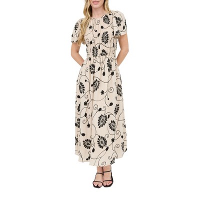 August Sky Women's Abstract Floral Smocked Midi Dress