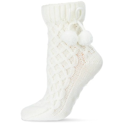 Memoi Pom Cross Top Lined Lounge Sock Ivory One Size