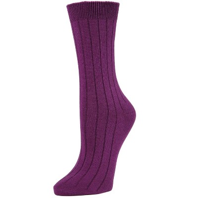 Memoi Women's Shimmery Sporty Stripe Crew Sock