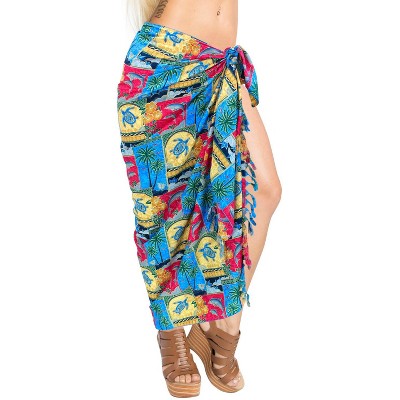 LA LEELA Women's Summer Bikini Wraps Beach Wrap Swimwear Sarong Cover up Skirt Bathing suit Swimsuit Pareo Coverups for Women One Size Orange, Turtle