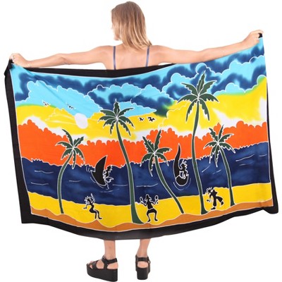 LA LEELA Women's Long Holiday Beachwear Swimsuit Wrap Sarong Swimwear Cover up Wraps One Size Orange, Floral