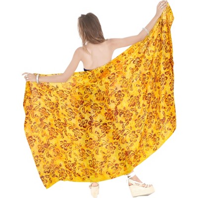 LA LEELA Women's Swimwear Cover up Wrap Sarong Wraps Long Beachwear Swimsuit Vacation Skirts One Size Yellow, Leaf