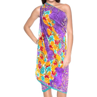LA LEELA Women's Summer Beachwear Sarong Bikini Wraps Swim Cover Up Skirt Wrap Swimwear Swimsuit Beach Coverups for Women One Size Purple,Floral