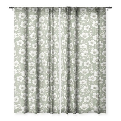 Avenie Buttercup Flowers In Sage Set of 2 Panel Sheer Window Curtain - Deny Designs