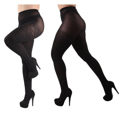 Memoi Diamonds/Solid 2 Pair Control Top Tights