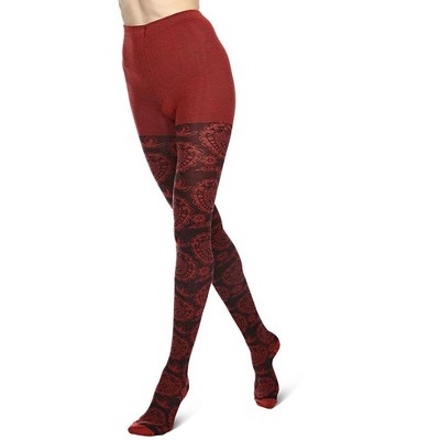 Memoi Paisley Patch Cotton Blend Sweater Tights