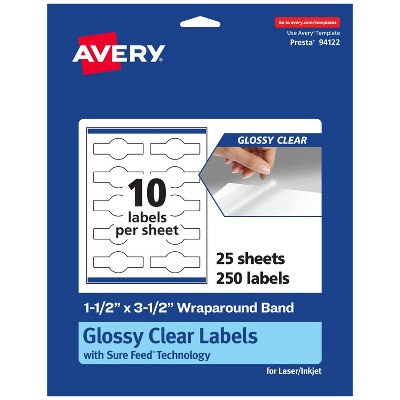 Avery Glossy Clear Wraparound Band Labels with Sure Feed, 1.5" x 3.5", 250 Glossy Clear Labels, Print-to-the-Edge, Laser/Inkjet Printable Labels