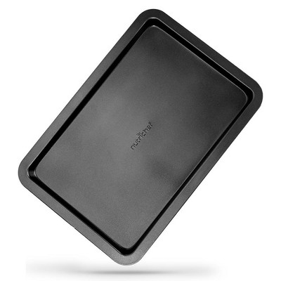 NutriChef Small Cookie Sheet - Deluxe Nonstick Gray Coating Inside & Outside With Red Silicone Handles