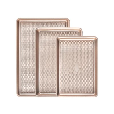 Rachael Ray 3pc Nonstick Cookie Sheet Set with Blue Grips: Carbon Steel Bakeware, Even-Heating, Dishwasher-Safe