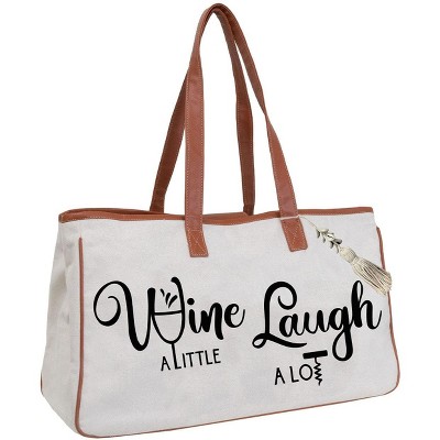 Magid Canvas Wine Tote "WINE A LITTLE LAUGH A LOT"